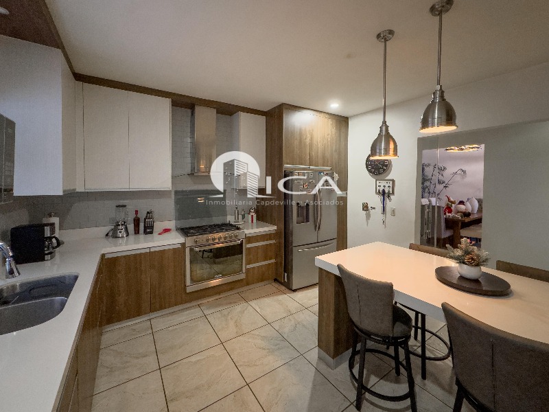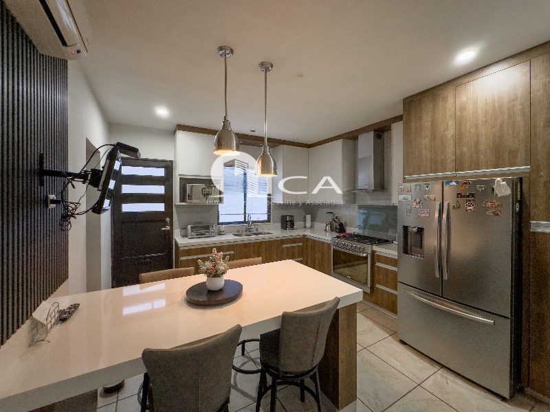 La propiedad ofrece una cochera para hasta cuatro vehículos, jardín frontal y una entrada con recibidor que da la bienvenida con estilo.